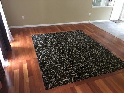 Living Room – We are begrudgingly going to keep the existing hardwood flooring in the living room. At first sight this appears to be an area rug in the middle of the room, but it is actually built into the center of the room and tacked down. Overall it isn’t too bad and we can work with some of the color tones in the patter to make it work with the final product.