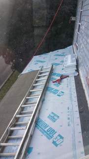 A brand new, and improved, roof has been installed and the siding installation is just about complete. The house is once again a uniform color and it looks spectacular! An updated front porch and new trim around the doors and windows is simply going to make this house pop! The local community is buzzing about the house, and curiosity and excitement are on the rise, as 335 Front Street becomes one of the nicest houses in the neighborhood.