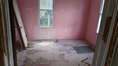 The old flooring has been removed from all of the rooms. We will be restoring the original 1920’s hardwood throughout the house. It’ll look great in the final photos once the remodeling is complete (better yet, come see it in person when we hold the open house).