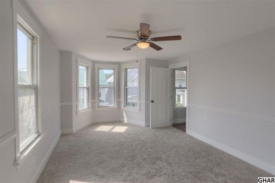 • The master bedroom. This large bedroom has the window bump out like the front room on the first floor. The demo for the master is not yet complete in these photos. The closet is being enlarged to be a walk-in and a door to the bathroom is being added to create an ensuite.