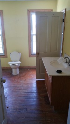 • New half bath and laundry room. The photo below is a room on the opposite side of the kitchen that will be converted into a half bath and laundry room. Previously the laundry was located on the second floor within a half bath. That space on the second floor will be converted into a full bath giving the house an additional full bath.